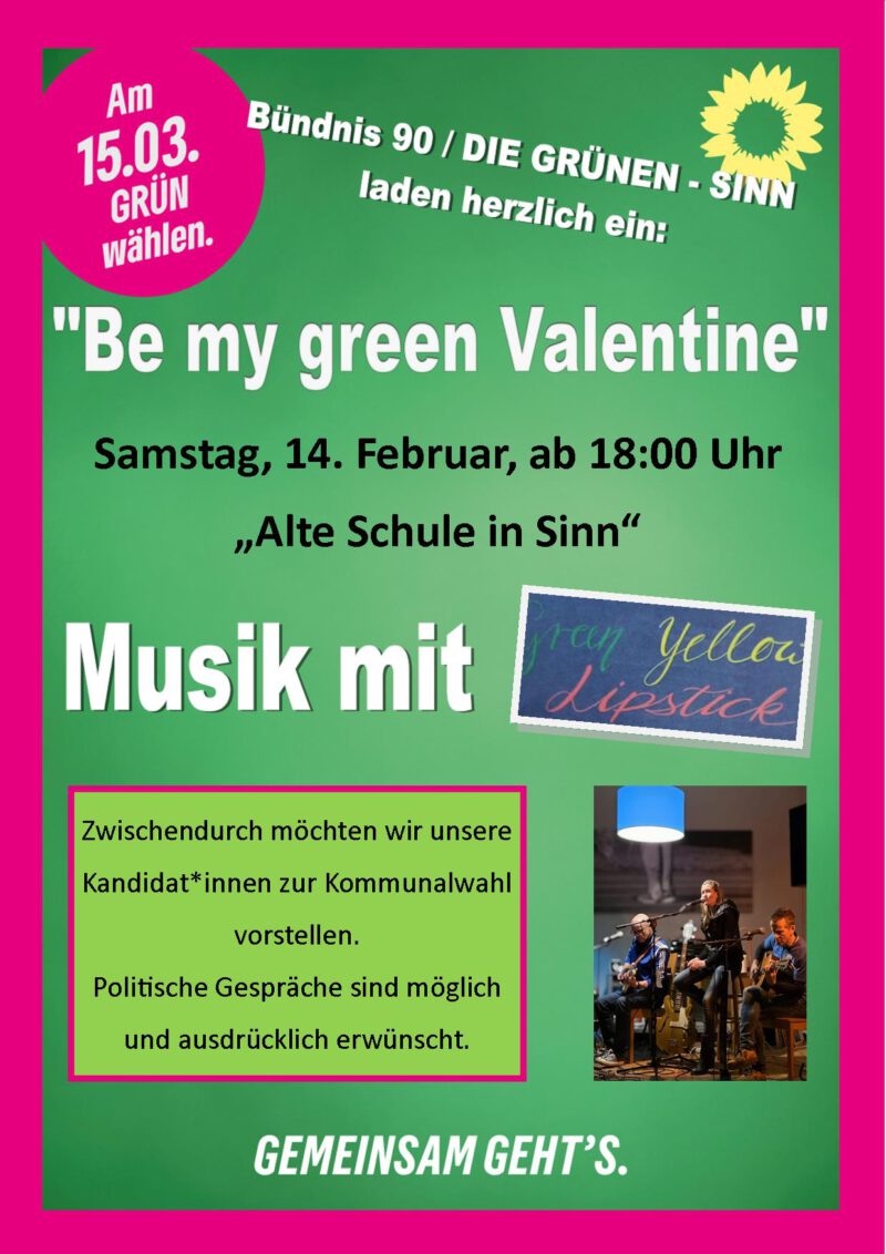 Hallo in die Runde, die Listenaufstellung der BÜNDNIS / GRÜNEN Sinn zur Wahl des Gemeindeparlamentes im März 2026, findet am Freitag, 05.12.2025, um 17 Uhr im Rathaus, Sinn, Jordanstraße 2 statt….